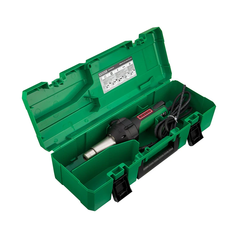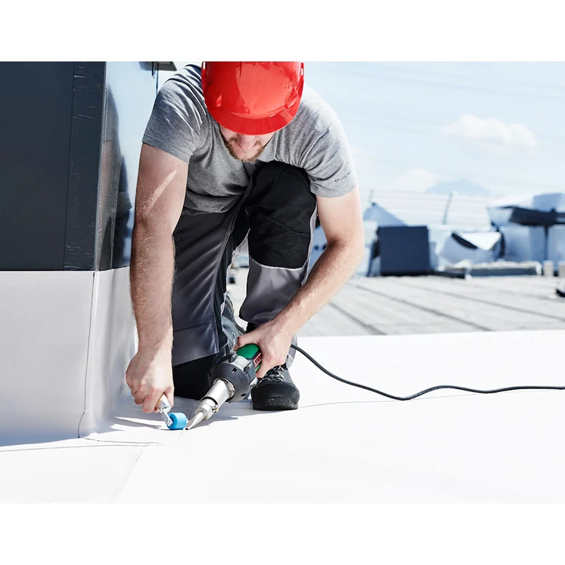 Appareil de soufflerie à air chaud intelligent conçu spécialement pour le soudage et le moulage de plastique sur les chantiers de construction. Grâce à son unité de commande intelligente e-Drive, il permet de réguler indépendamment la température (de 40 à 620°C) et le débit d’air. Les valeurs de réglage actuelles sont affichées sur l’écran numérique.