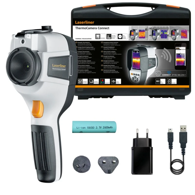 La caméra thermique connect compacte de marque LASERLINER convient aux applications dans l’électronique, le bâtiment et la mécanique. Un capteur infrarouge permet d’effectuer des mesures rapides et simples pour une évaluation des profils de température. Il est possible de procéder à l’analyse au moyen d’une image infrarouge, d’une image numérique et d’une image MIX. En combinant l’image numérique et l’image infrarouge, l’image MIX offre à l’utilisateur une représentation complète et très facile à comprendre des profils de température.