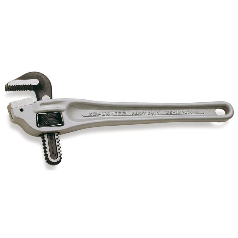 En alliage d’aluminium. Excellente maniabilité, bonne prise en main. Autoserrage assurant des reprises à effet de cliquet. DE par son design, elle est particulièrement appropriée pour travailler sur des tuyaux difficiles d’accès (coins restreints, à proximité du sol, etc…). Manche avec section double « T », griffe coudée à 90°.