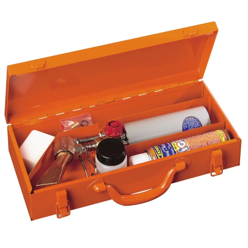 Le coffret métal fer à souder de couvreur autonome inclut un fer couvreur Réf 364. Silencieux, ce fer couvreur doté d’un allumage piezo, permet un fonctionnement immédiat dans toutes les positions grâce à sa panne orientable et inclinable. Il est adapté au travail du zinc, cuivre, inox, zinc pré-patiné, plomb. 70min d’autonomie, on peut en faire avec ce fer à souder de couvreur ! Sa qualité de fabrication ainsi que sa panne turbo « spécial conditions extrêmes » permettent une utilisation dans des conditions climatiques hivernales difficiles.