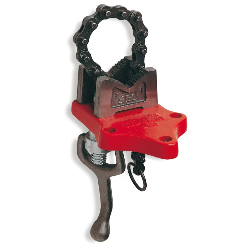 Base en fonte maléable, en forme V. Conçu pour un ancrage sur établi. Idéal pour tubes acier. Mors interchangeables en acier trempé.